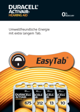 Durch das Setzen neuer Maßstäbe für beste Leistung und längste Laufzeiten, treibt Duracell Activair Innovation in der Batterieindustrie an. Wir antworten auf neue Herausforderungen mit Qualitätslösungen. Der einzigartige Nutzen für Sie ergibt sich aus unserer sorgenfreien Verpackung. Die Duracell Activair Nuggetbox und EasyTabs sind perfekt darauf ausgelegt, die Handhabung jeder einzelnen Batterie einfach und effizient zu gestalten. Duracell Activair zeichnet sich durch Exzellenz in jeder Zelle und jeder Verpackung aus. Duracell ist das Herz Ihres Hörgerätes.